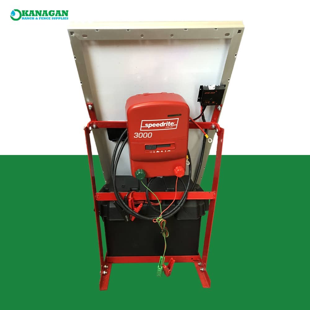 The Speedrite 3000 Solar Electric Fence System gives you everything you need to run your fence on solar power in one convenient package. This system combines a Speedrite 3000 Unigizer with a 40 W solar panel and a battery box, making it a perfect solution for remote areas with no 110 V mains hookup.